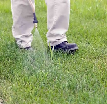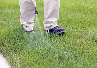 Después de limpiar la zona, aplicamos un herbicida de acción prolongada para garantizar que no vuelvan a aparecer malas hierbas bajo el césped artificial.